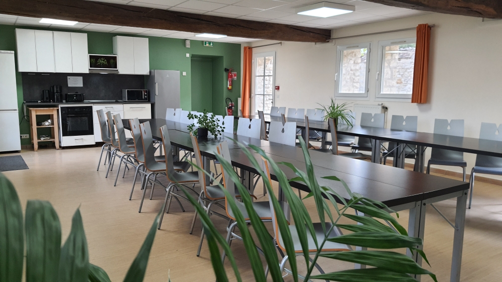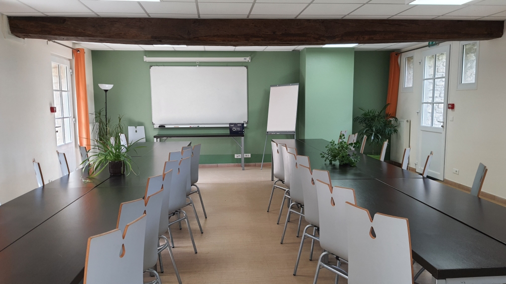 Avec une surface de 63 m², elle peut accueillir 30 personnes. Elle dispose d’une large cuisine toute équipée et de sanitaires, l’ensemble autorisant des réunions prolongées.